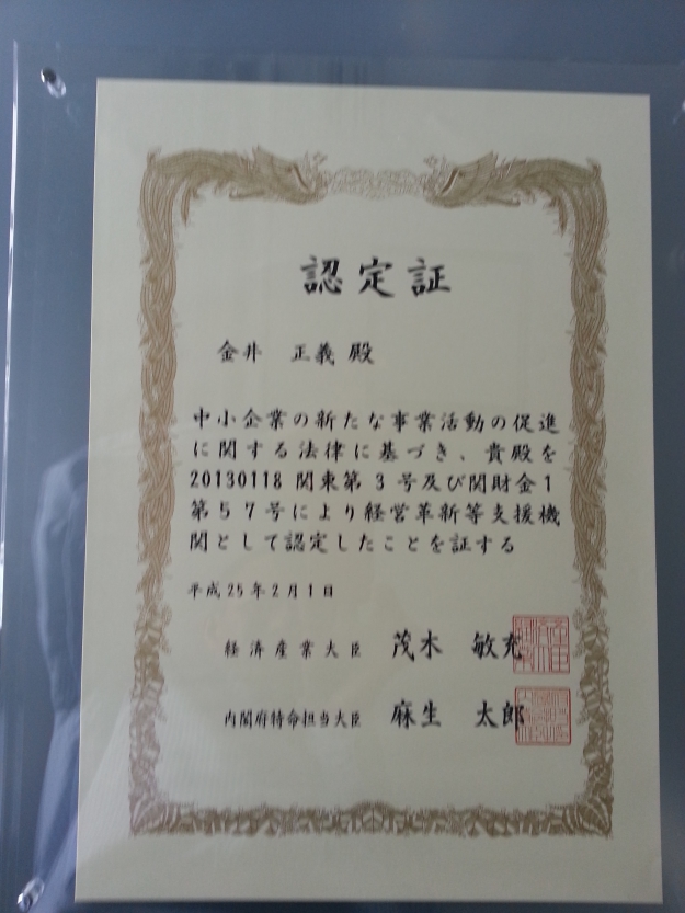 経営革新等支援機関に認定されました 。